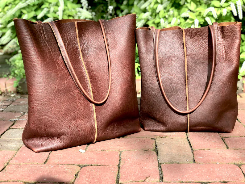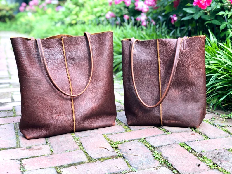 >Couro <Usamos couro de grão integral para todas as nossas sacolas, que é o couro mais forte e mais durável disponível. Usamos couro verdadeiro que não foi lixado ou raspado e cada peça tem uma textura única e imperfeições naturais. A pele de grão integral condiciona-se naturalmente com o uso, desenvolvendo uma pátina muito procurada e um carácter único ao longo do tempo.