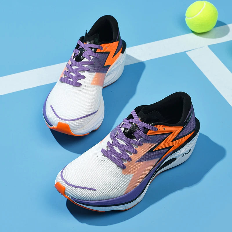 Engineered for peak performance with cutting-edge technology, these ultra-lightweight running shoes feature a breathable mesh upper and an advanced midsole that offer explosive energy return and cloud-like cushioning with every stride. The aerodynamic design and carbon-infused propulsion plate maximize efficiency, propelling you forward with minimal effort. Whether you’re training for a marathon or pushing for a personal best, these shoes deliver unmatched comfort, stability, and speed.