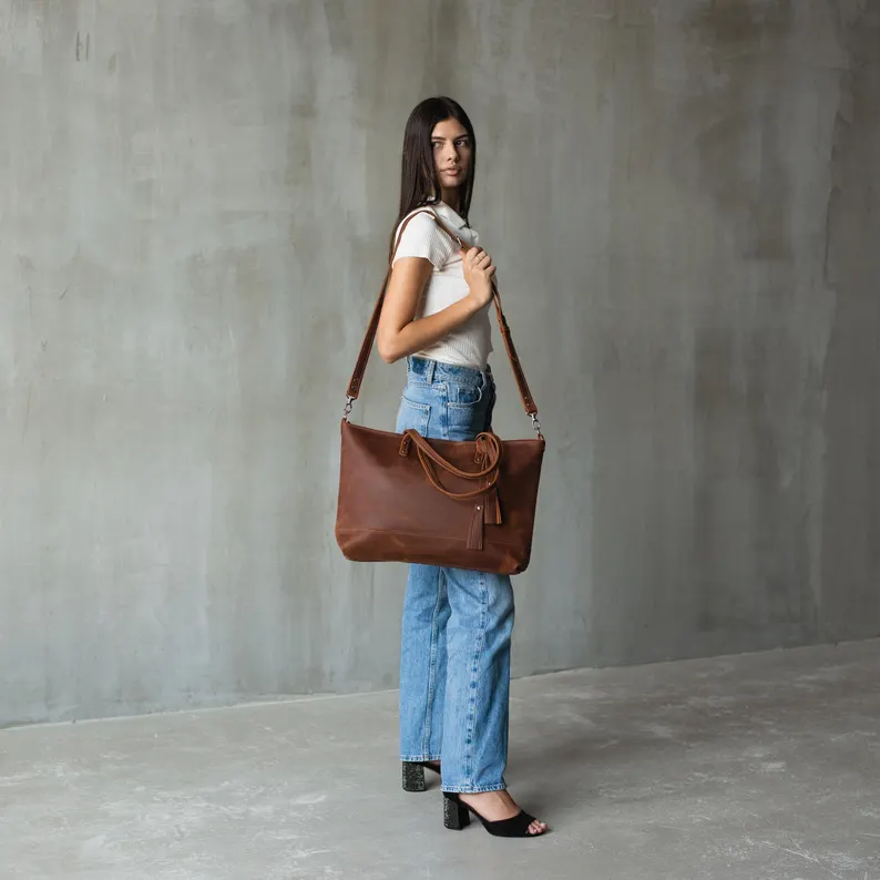 Leather laptop bag women with tassel, Laptop work bag, Custom laptop bag 15.6, Laptop work tote, Womens laptop bag leather, Laptop bag women