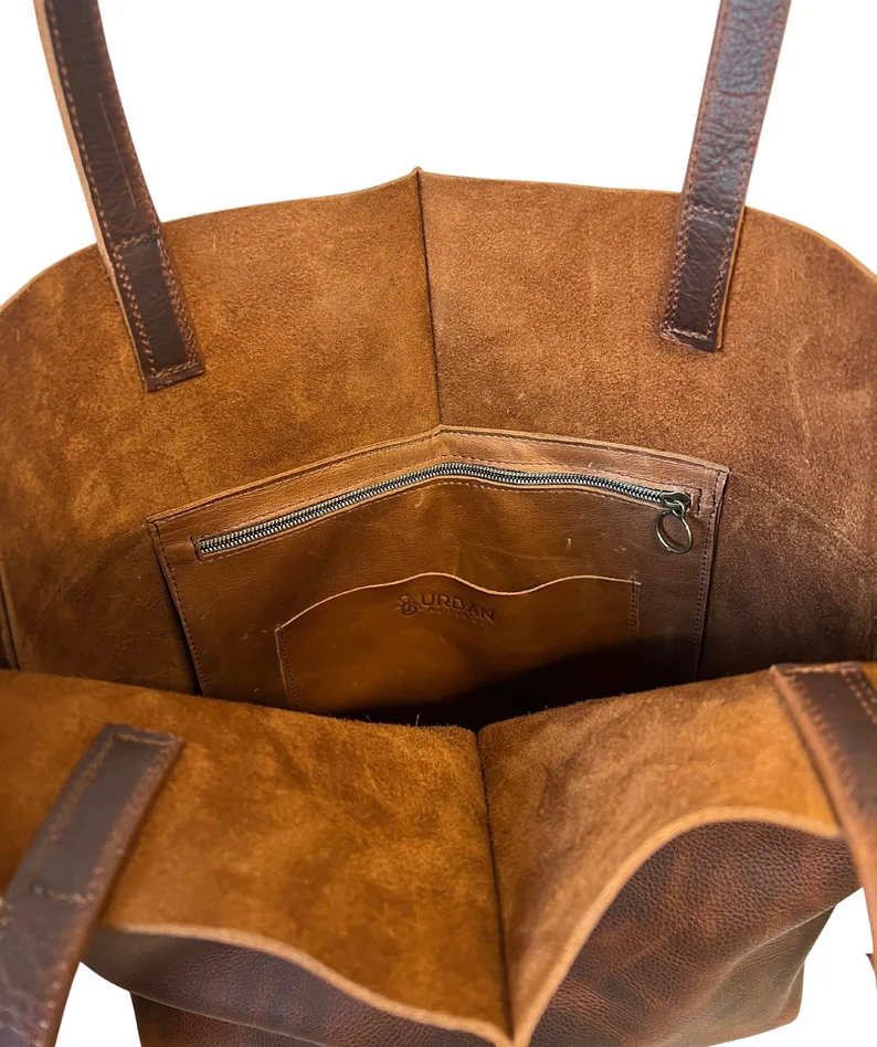 Bolsa em pele castanha, com seixos, oleada e super resistente.
